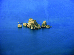 Geologically, the rock shares the limestone-dolomitic composition of the Lattari Mountains and perhaps represents the summit of an ancient mountain that sank following the collision of the African and Eurasian plates. The structure is composed of dolomitic and limestone sedimentary rocks similar to the Lattari Mountains, suggesting a common origin. It is conceivable that the islet represents the peak of an ancient relief that slid into the sea, a process linked to the collision between the African and Eurasian plates that shaped the entire Campanian plain. In antiquity, the rock was called “Petra Herculis”: according to legend, Hercules broke off a block from Mount Faito after his tenth labor and threw it into the sea, giving rise to the islet (a story also reported in the accounts of Pliny the Elder, who mentioned the place before perishing in the eruption of 79 A.D. right near the rock). During the Roman era, a temple dedicated to Hercules stood there, of which a section of wall in opus reticulatum remains today.